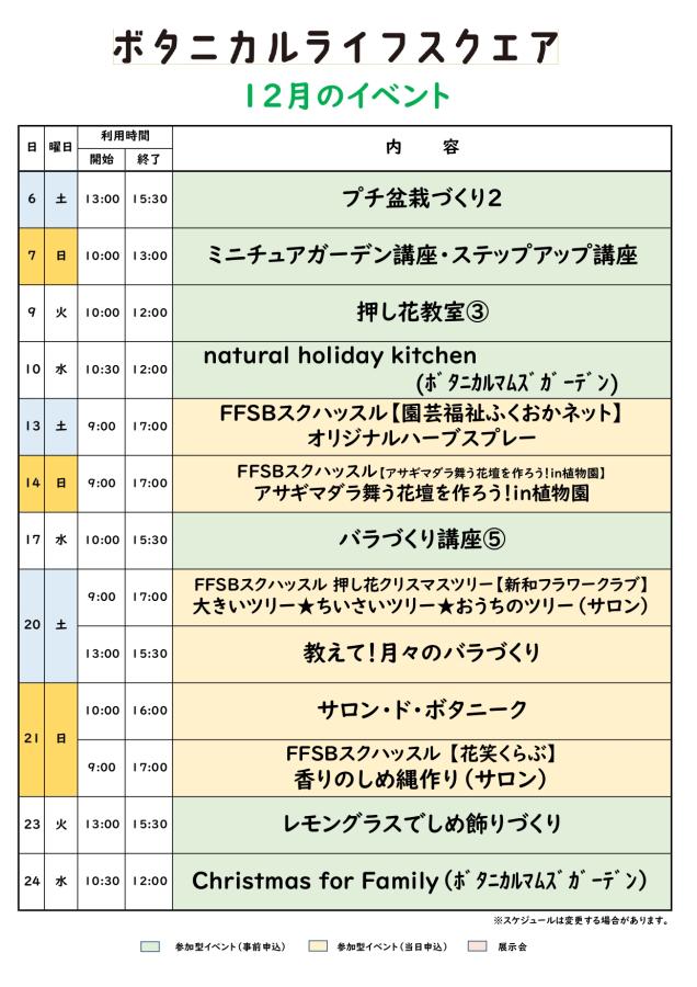 ボタニカルライフスクエア 12月のイベント予定
