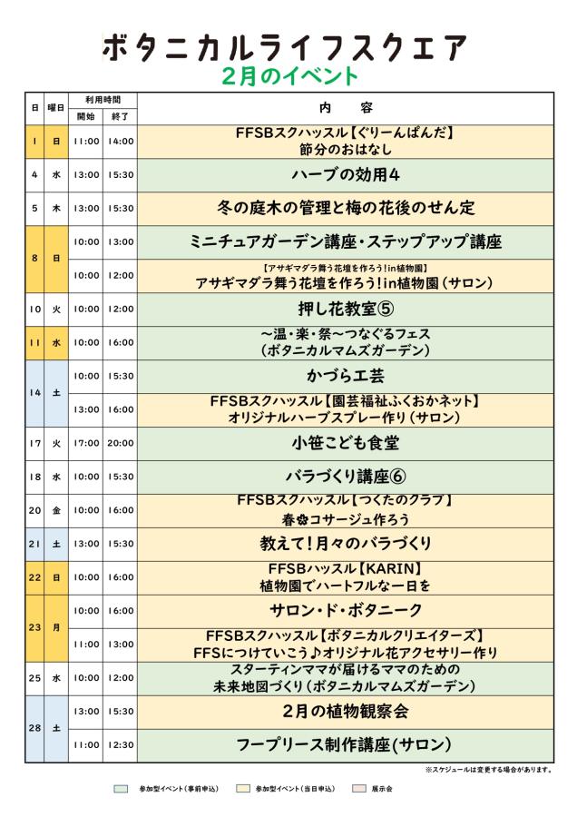 ボタニカルライフスクエア2月のイベント予定