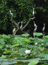 舞鶴公園のお濠の枯れ枝に留まる鷺と蓮を数十回狙ったが、普段は二~三羽で、蓮が次々と咲く頃は葉も茂り思い道理の写真に成らなかった。「鷺の楽園」を撮影した日は、下の枝に五羽いたが、上の枝にもと、待つこと数十分、一羽また一羽と集まって来た。良い写真は、計算+偶然+偶然の産物、偶然とお友達になるのが一番。