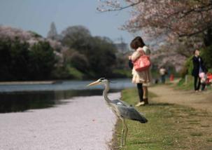 今年の桜はことの他綺麗で、何度か舞鶴公園に通いました。福岡の春を満喫しているたくさんの笑顔に出会いました。お濠にはカワセミや桜の花びらを食べているヒドリガモも見られました。このアオサギはとても人懐っこく近づいてもなかなか逃げず、ポーズをとって花筏とのコラボを撮らせてくれました。