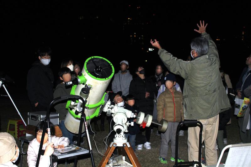 講師による説明を交えながら、冬の星座や、天体望遠鏡を使った、月、木星、土星の観望を行います。