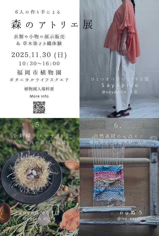 福岡市植物園 ボタニカルライフスクエアにて、一日限定「森のアトリエ展」をポップアップ開催いたします。
