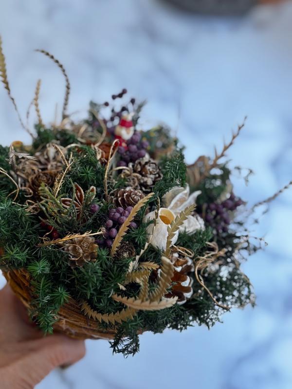 針葉樹や自然素材を使ったクリスマス飾りをつくります。