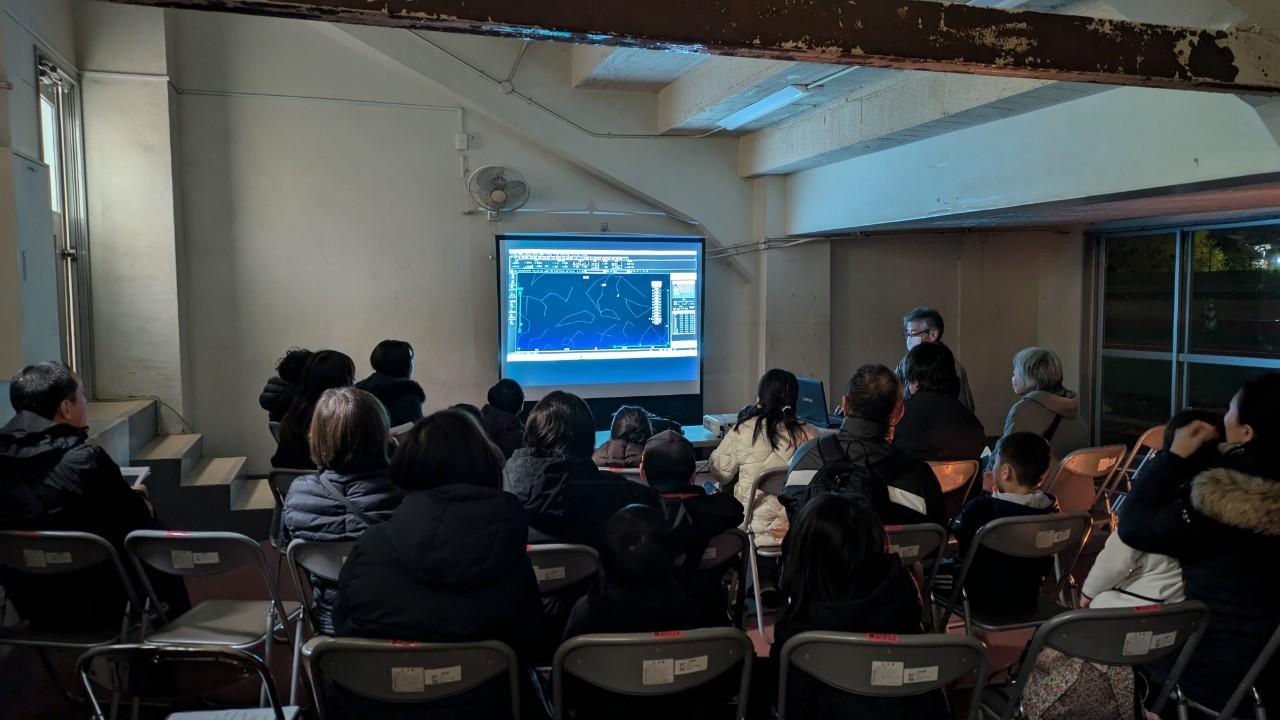 講師による説明を交えながら、冬の星座や、天体望遠鏡を使った、月、木星、土星の観望を行います。