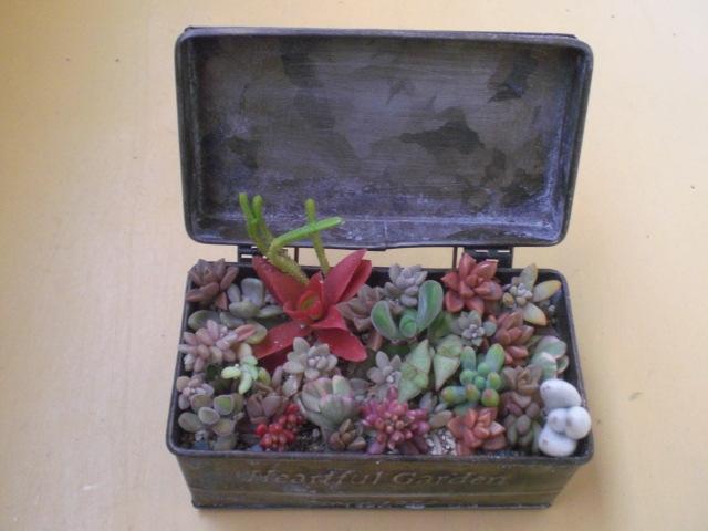 縦11.5cm×横20.5cmのアンティークな器に5種類以上の多肉植物を器いっぱいに寄せ植えします 日時;平成25年10月23日(水)18:30~19:30 対象;高校生以上 定員;20名 ※写真はイメージです