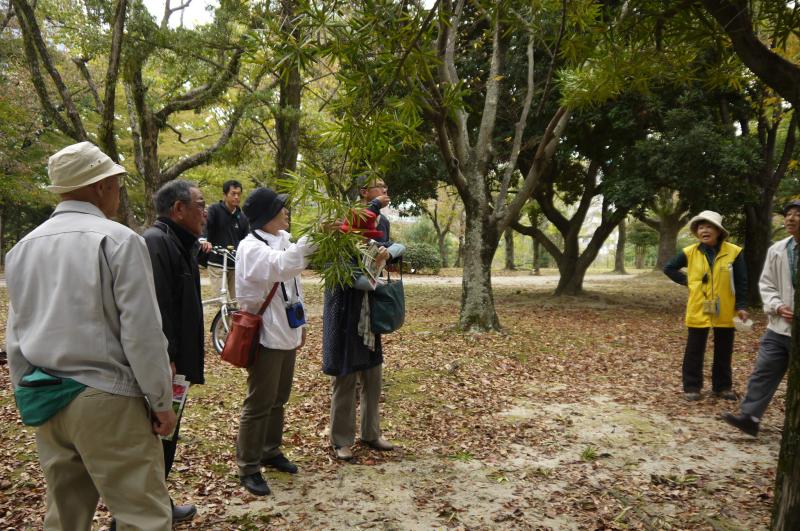秋の舞鶴公園を巡って樹木や草花の観察会を行います。