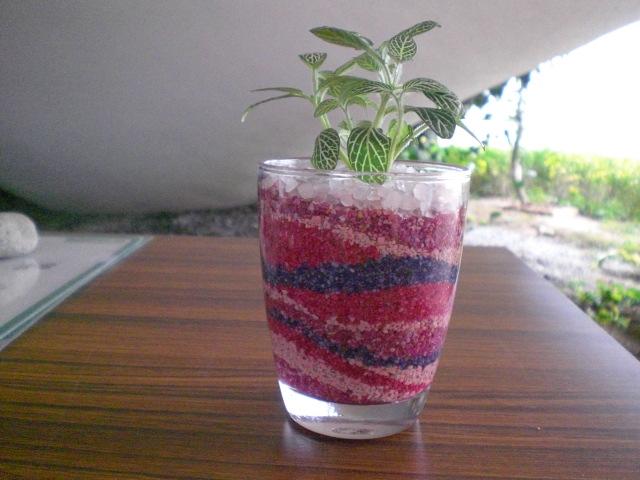 カラーサンドは、ゼオライト粒などを、いろいろな色で染めた素材で、生活の中に彩とやすらぎを演出するための小道具です。