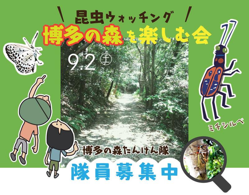 夏から秋にかけて博多の森の中に生息している昆虫の観察会を行います。