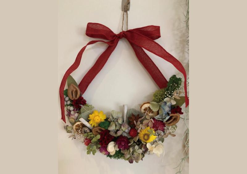 ドライフラワーやプリザーブドフラワーを使ったリースを作ります。