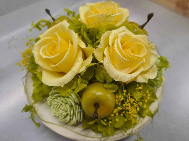 キャンドルトレイを使って、爽やかなプリザーブドフラワーアレンジを作ります