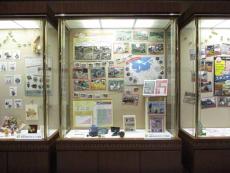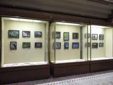 福岡市総合図書館1階、 正面玄関から駐車場にかけての通路のショーケースに作品を展示しました。