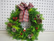 ベースが出来たら、リボンや木の実などをつけてボリュームがあるクリスマスリースが完成しました。 受講生の皆さんは嬉しそうに作品を持ち帰られました。