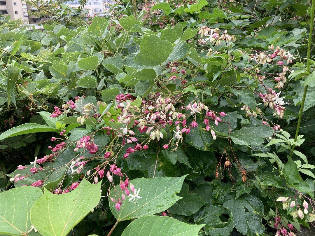 2025/10/03撮影。西公園 東側展望広場から博多湾を望む辺りにピンクのクサギ(臭木)が差いています。可憐な花ですが名前の通り独特のニオイが漂っていました。