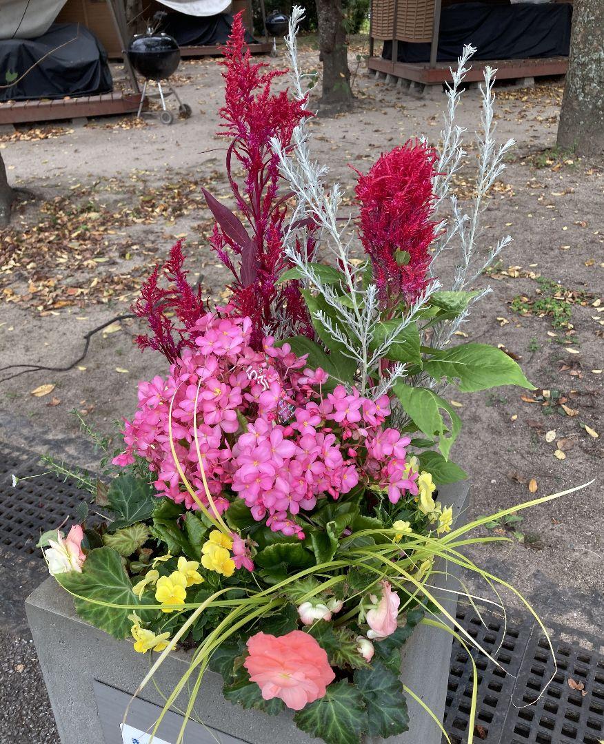 2025/10/22撮影。4日前に投稿した舞鶴公園のプランターは「おもてなしプランター」と名前があるようです。第1期で20基、2期で25期増設になっている模様。この日は年に4回の植え替え作業のようでした。真紅のケイトウ、ピンクのベゴニア、黄色のビオラ?などが植えられていました。