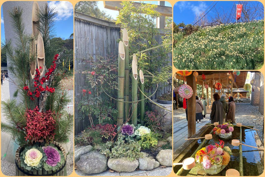 三社詣 門松、花手水