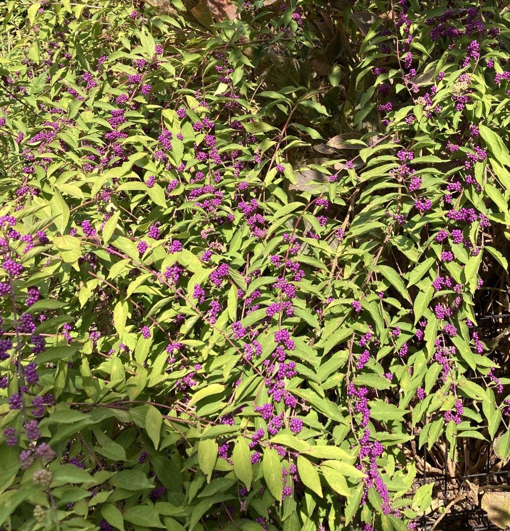 2023/10/14撮影。421裁判所南辺りの周回路には小紫の実が鈴なり。前回と比べてすっかり紫に色付いてます。