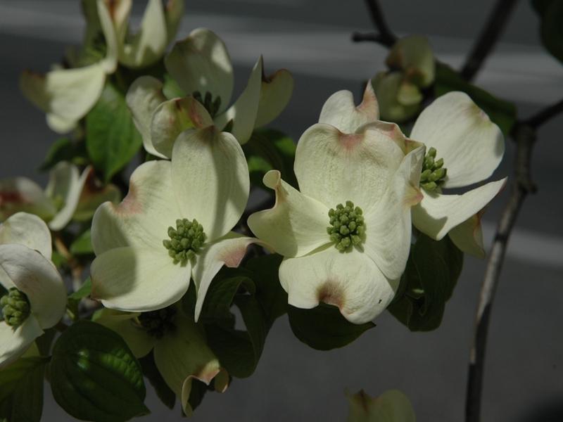 | 特徴 | 【豆知識】 大きく花びらのように見えるものは総苞(がく)で、中心にある小さなツブツブの一つ一つが花です。 学名にfloridaとあるように、アメリカ東海岸が原産です。日本に最初に入ってきたのは明治時代で、桜をアメリカに送ったお礼として持ち込まれたそうです。 有名な歌のタイトルになっていますが、この歌が生まれたいきさつを知ってからは、ハナミズキの花を見るたびに世界中の人々が理解し合って平和になることを願ってやみません。 |