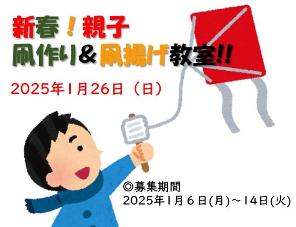 | その他 | *雨天荒天時は凧作り教室のみ開催 *応募多数の場合は抽選となります。 *状況により時間変更になる場合があります。 |