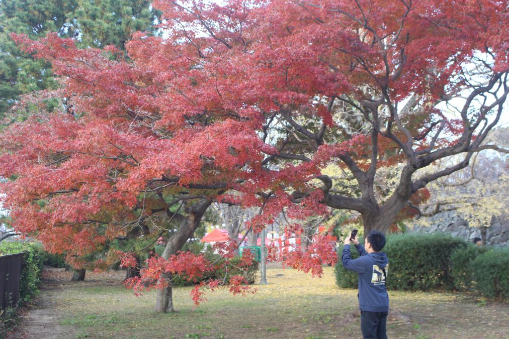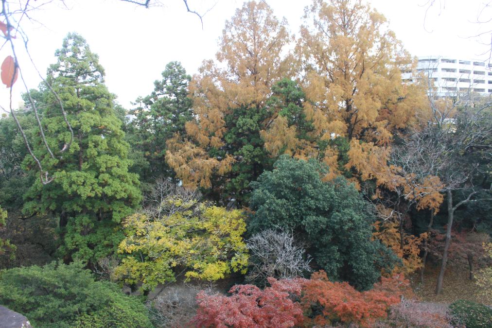 園内の紅葉は、場所によって色褪せや散り具合が異なりますが、そろそろ終わりそうです。