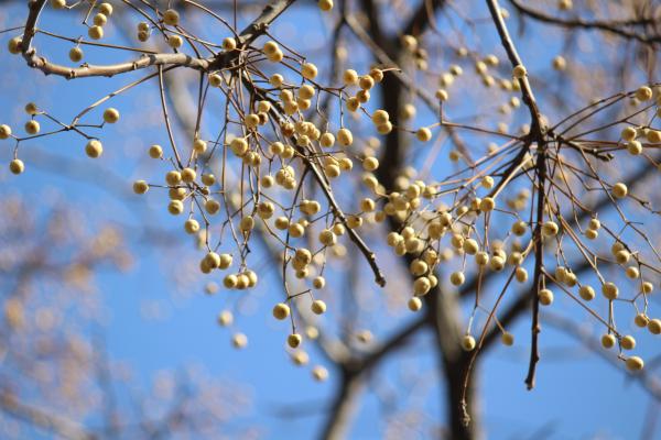 冬晴れの舞鶴公園 2026年01月16日 1月16日、丸い小さな実が冬の青空に映えているのはナンキンハゼとセンダン 球技場近くの白色の実がナンキンハゼ 名島門前にある大きな木がセンダン 見上げても分かりづらいですが、黄色ぽい色の実がついています センダンの実 南口のカワズサクラ 旬の情報一覧へ戻る