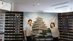 同じ場所で角度を変えて、石垣をバックに・・・。