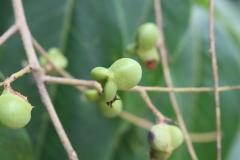 多聞櫓の前では、センダンの実が淡い黄色に熟していました。 シンプルな形の枝に、たくさん着いた実。 まるでオブジェのようですね。