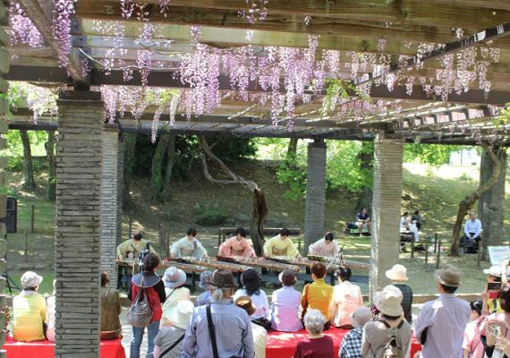 藤棚のしたで、お琴の五重奏を楽しんでいただきました。