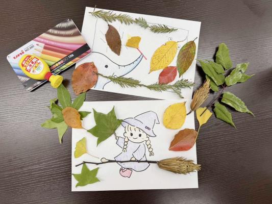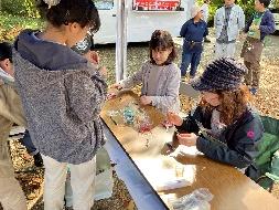 字書き葉・竹編み・川原石お絵描きなど自然を使った様々な昔遊びを体験