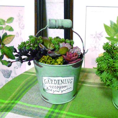 ミニリースの上にココヤシファイバーを乗せ鳥の巣を作り、多肉植物を寄せ植えした卵の殻容器を乗せ、鳥の巣をイメージしたエッグプランツを作ります