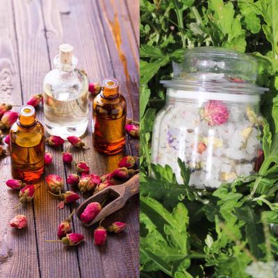 バラや、秋の七草で香草として古くから重用されてきたフジバカマ、浄化に使われるホワイトセージなど、様々な植物でオリジナルのバスソルトを作ります。