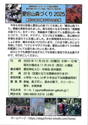 地域の森づくり活動団体 愛宕の森と緑を守る会より、『愛宕山森づくり 2025』のご案内です!