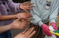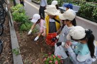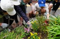 元気いっぱいな子どもたちと花植え活動をするには、事前準備が大切と山野さん。 子どもたちはポットから出して植えるだけ!深さが浅すぎて枯れてしまうような事態を防ぎます。