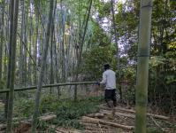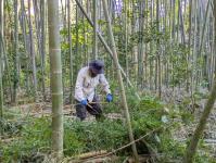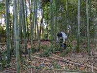 「時間になったから始めましょうか!このメンバーなら竹林伐採を中心に行いましょう」 という声掛けのもと、参加メンバーに合わせて作業内容を決め、活動がスタートしました。 日の光を遮っている竹を中心に伐採を行い、「倒しまーす!」と声を掛け合いながら安全第一で作業を進めます。 竹を切り倒す人、切り倒した竹の枝葉を落とす人に分かれての分担作業です。 なお、大きな竹は今回はあえて残し、今後イベント前に切り倒して竹灯籠に活用する予定とのこと。