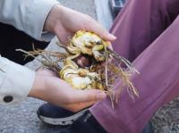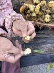 分裂した球根を包み込むように持ち、