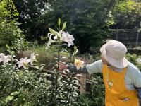 舞鶴公園フラワーボランティアの圃場には、 分球して育て上げたユリが沢山! 「何倍にもなって嬉しい」と語ります。