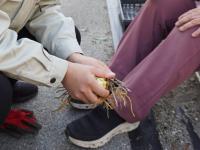 球根を傷つけないよう、周囲から大きくスコップを入れて掘り上げます。