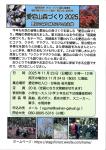 日時:2025年11月23日 (日曜日) 9時~12時 雨天の場合は11月24日(祝日)に順延 集合場所:愛宕神社入口・甘味処 岩井屋前 定員:20名(定員になり次第締め切ります) 参加対象:小学生~大人(小学3年生以下は保護者同伴) 服装等:長袖、長ズボン、長めの靴下、スニーカー、 軍手、水筒持参